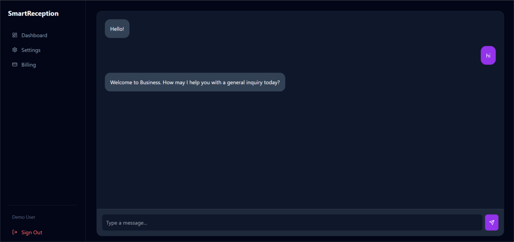 Transform your business with SmartReception - an AI-powered receptionist that handles calls 24/7 with incredibly natural voice conversations. Never miss another customer call again. Our AI understands context, provides accurate answers, and sounds completely human. Perfect for small businesses that can't afford full-time staff but need professional call handling. Setup takes 5 minutes, costs 90% less than hiring, and works around the clock. Try our live voice demo now and hear the difference!
